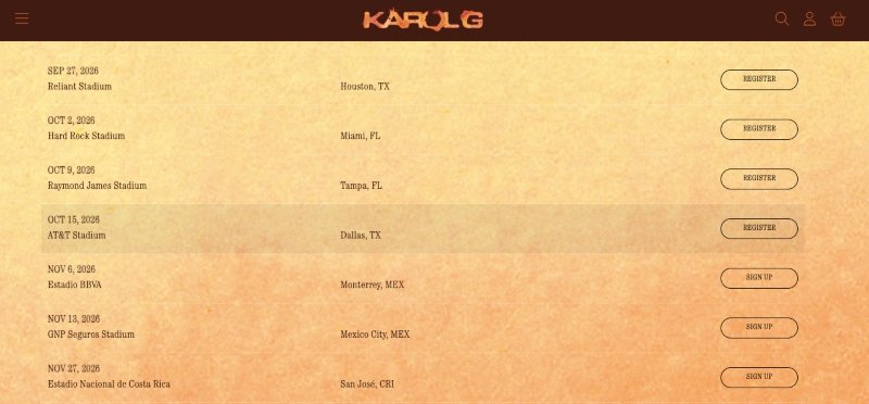 De acuerdo con la información destacada en su portal digital Karol G, el recorrido que llevará a cabo la artista colombiana fue presentado como una gira de 39 fechas (con más por anunciarse), promovida por Live Nation, en las que aparece Arlington dentro de la ruta del tour con fecha para el 15 de octubre de 2026 en AT&T Stadium.